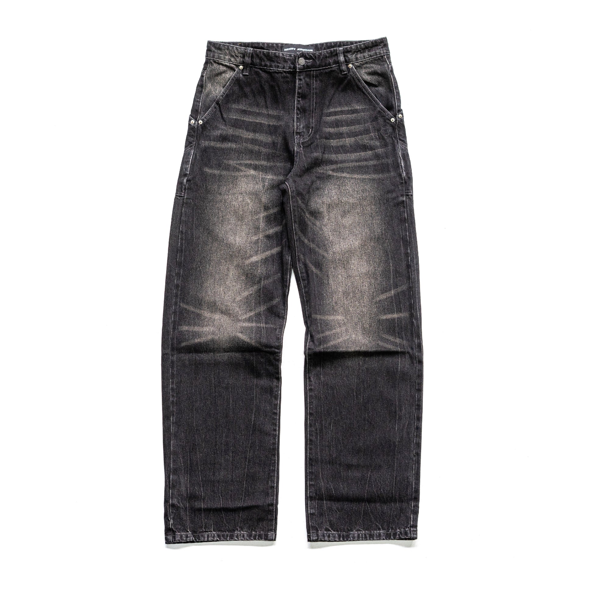 Our Utility denim is the 3rd iteration of our V1 and V2 Denim. Same fit as the V2 denim but with subtle upgrades to durability and functionality. A redesigned buckle-back allows for easy and quick adjustments to the waist without the need for a belt. The diagonal back patch pockets allow for a sort of 'quick-draw' effect, combined with a large capacity. These jeans are a straight fit from the thigh to the hem.
