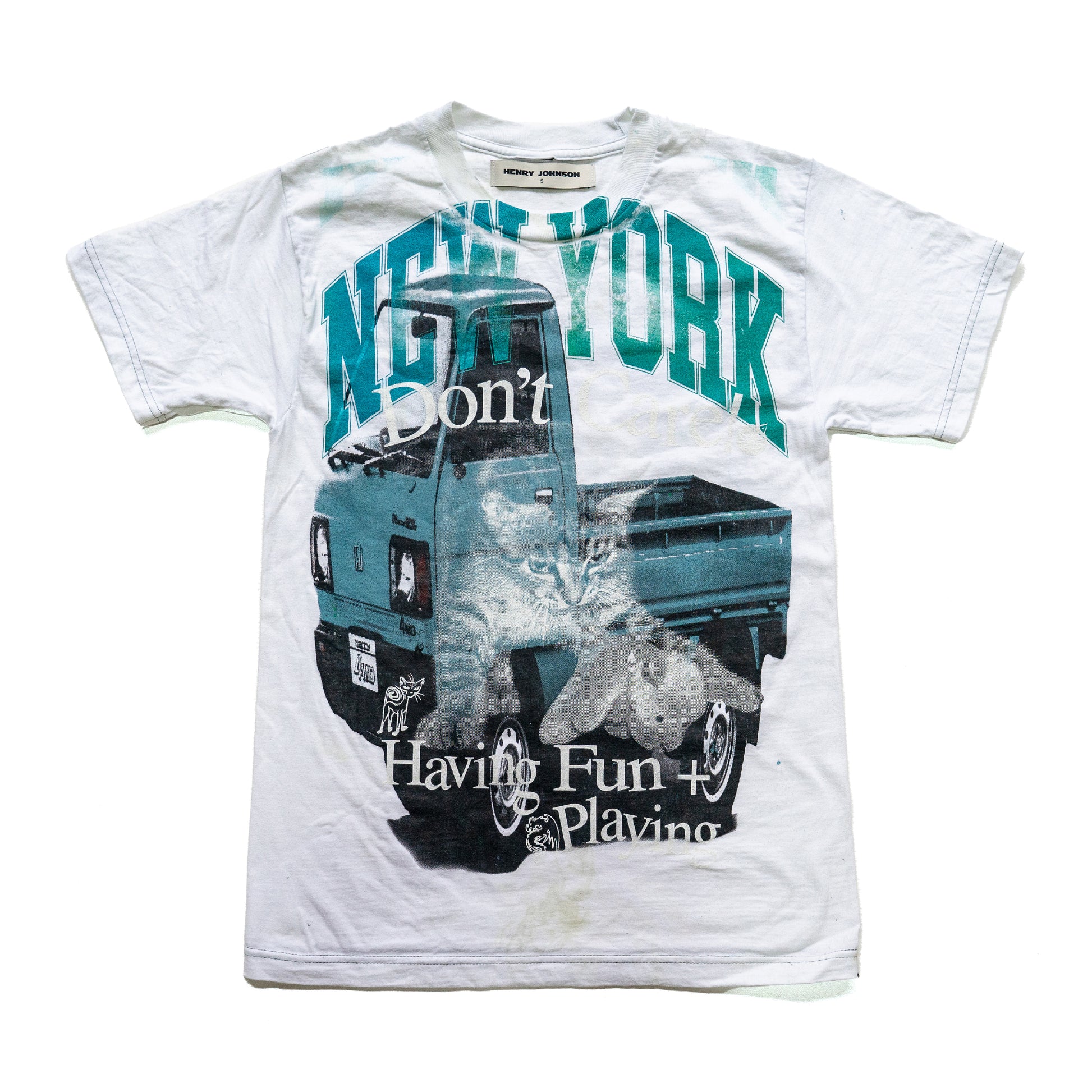 Each test print shop rag shirt is a unique product of several months of screen printing. During a normal print run, screens need to be cleaned, prints need to be aligned, and mistakes are made. These shirts are the result.