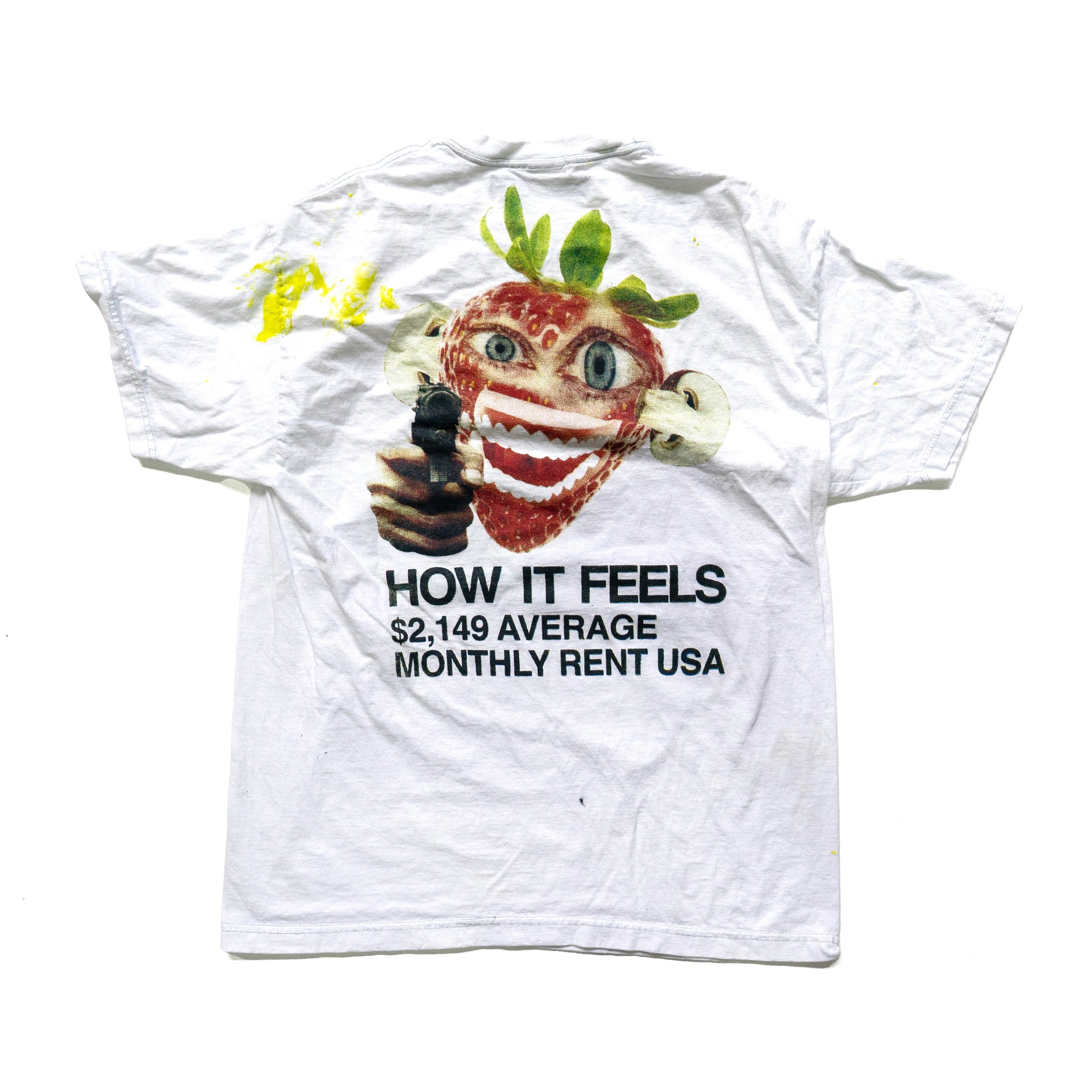Each test print shop rag shirt is a unique product of several months of screen printing. During a normal print run, screens need to be cleaned, prints need to be aligned, and mistakes are made. These shirts are the result.
