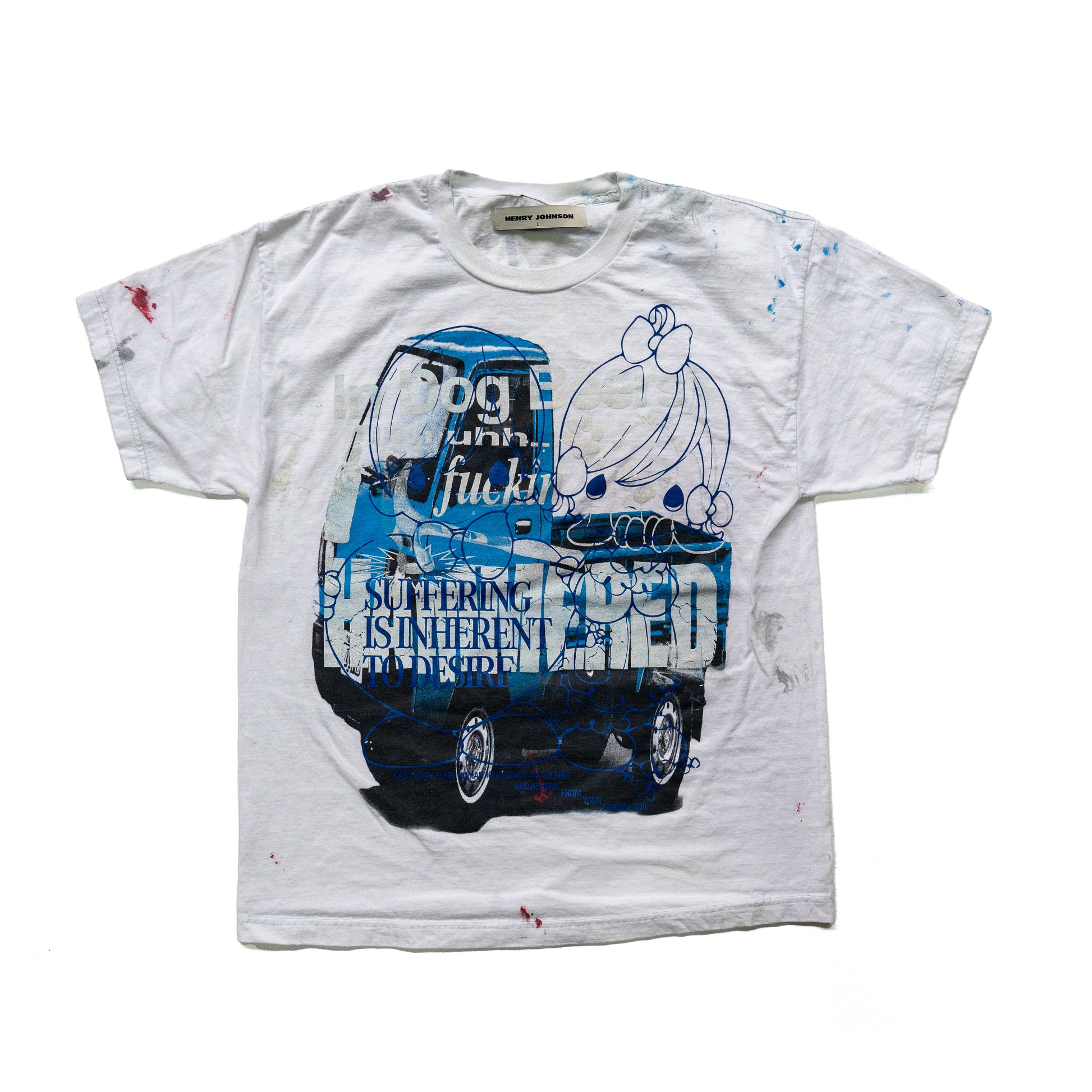Each test print shop rag shirt is a unique product of several months of screen printing. During a normal print run, screens need to be cleaned, prints need to be aligned, and mistakes are made. These shirts are the result.