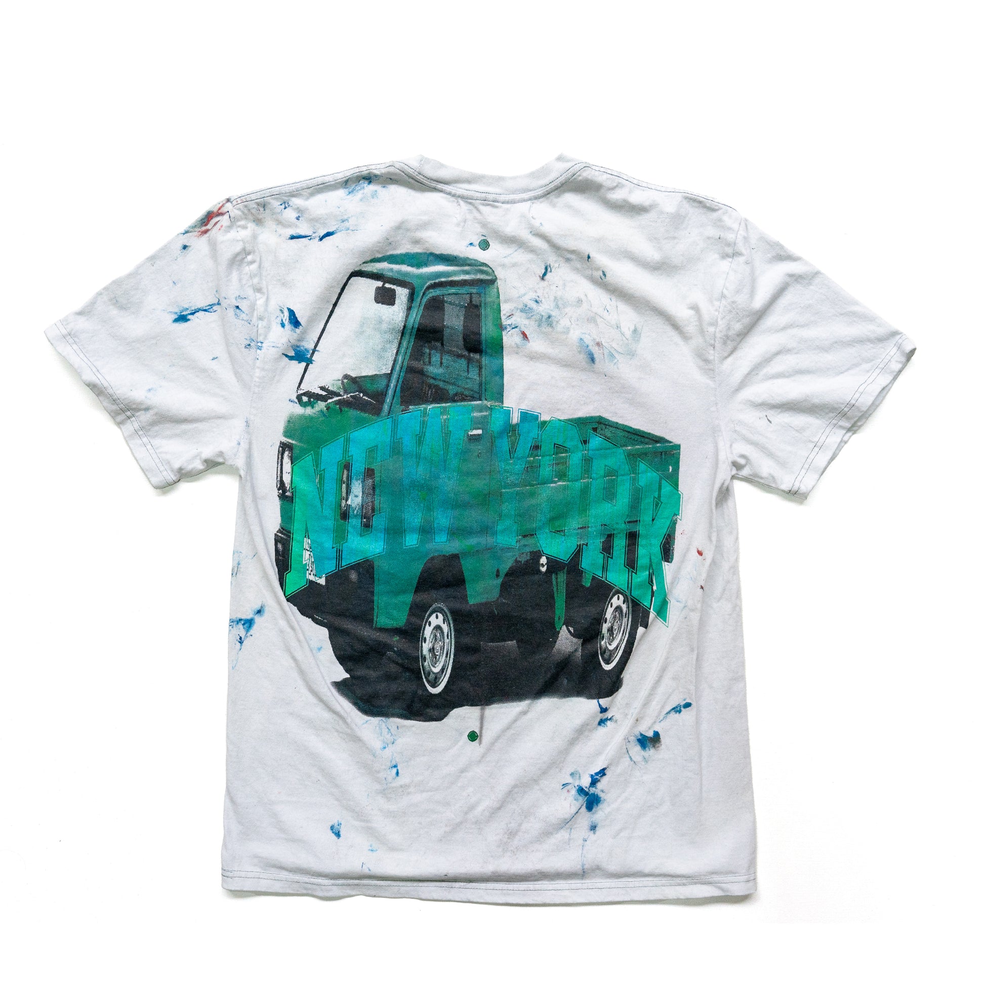 Each test print shop rag shirt is a unique product of several months of screen printing. During a normal print run, screens need to be cleaned, prints need to be aligned, and mistakes are made. These shirts are the result.