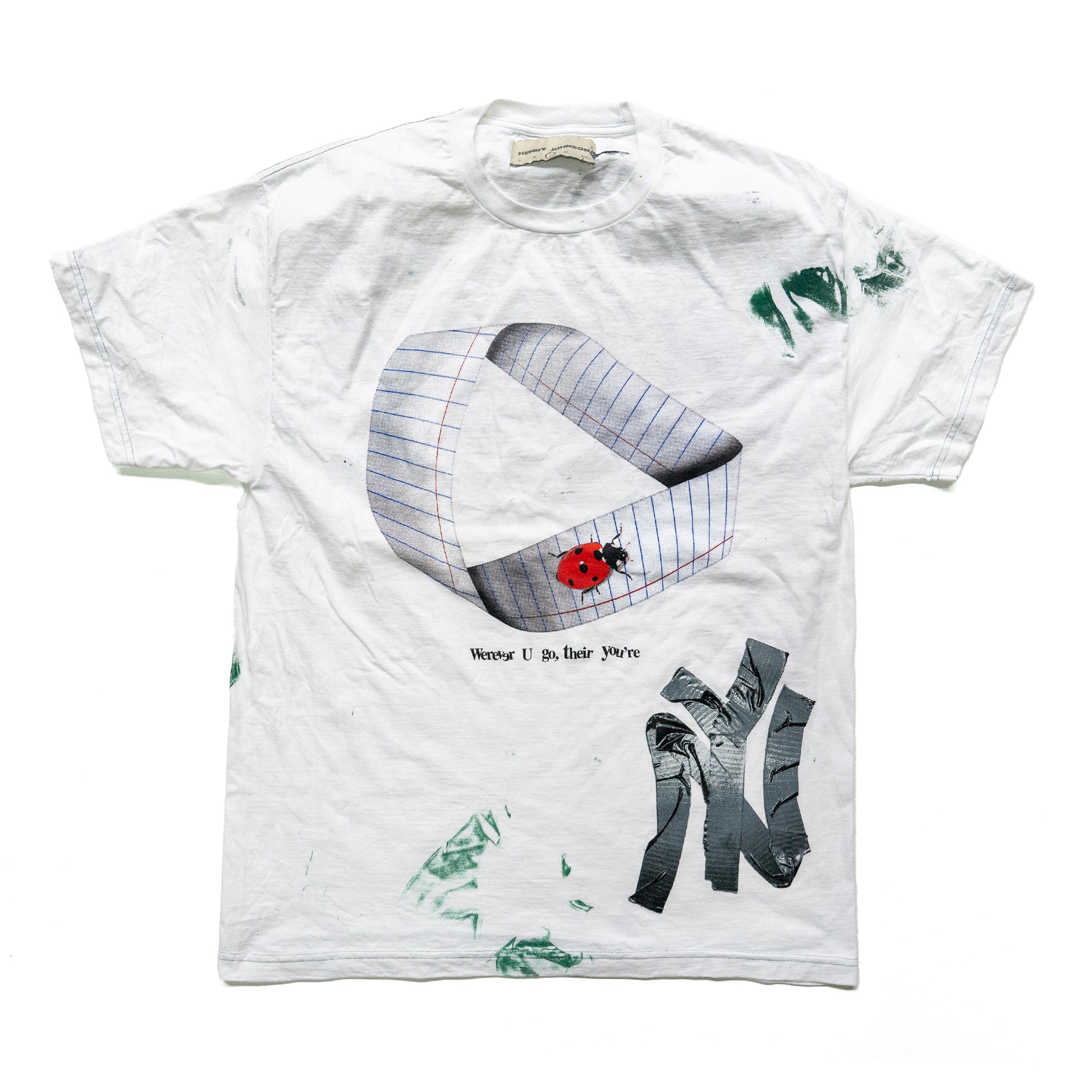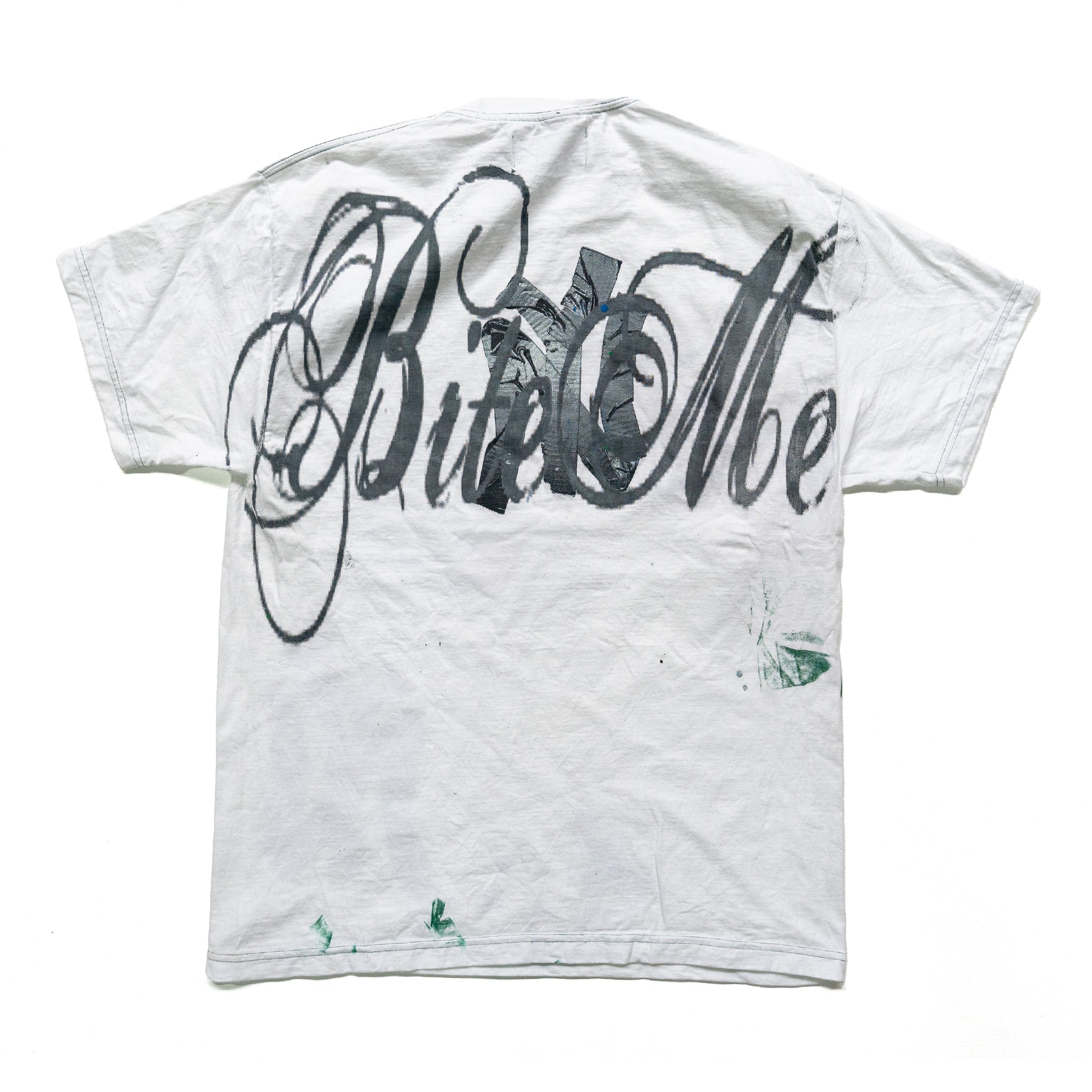 Each test print shop rag shirt is a unique product of several months of screen printing. During a normal print run, screens need to be cleaned, prints need to be aligned, and mistakes are made. These shirts are the result.