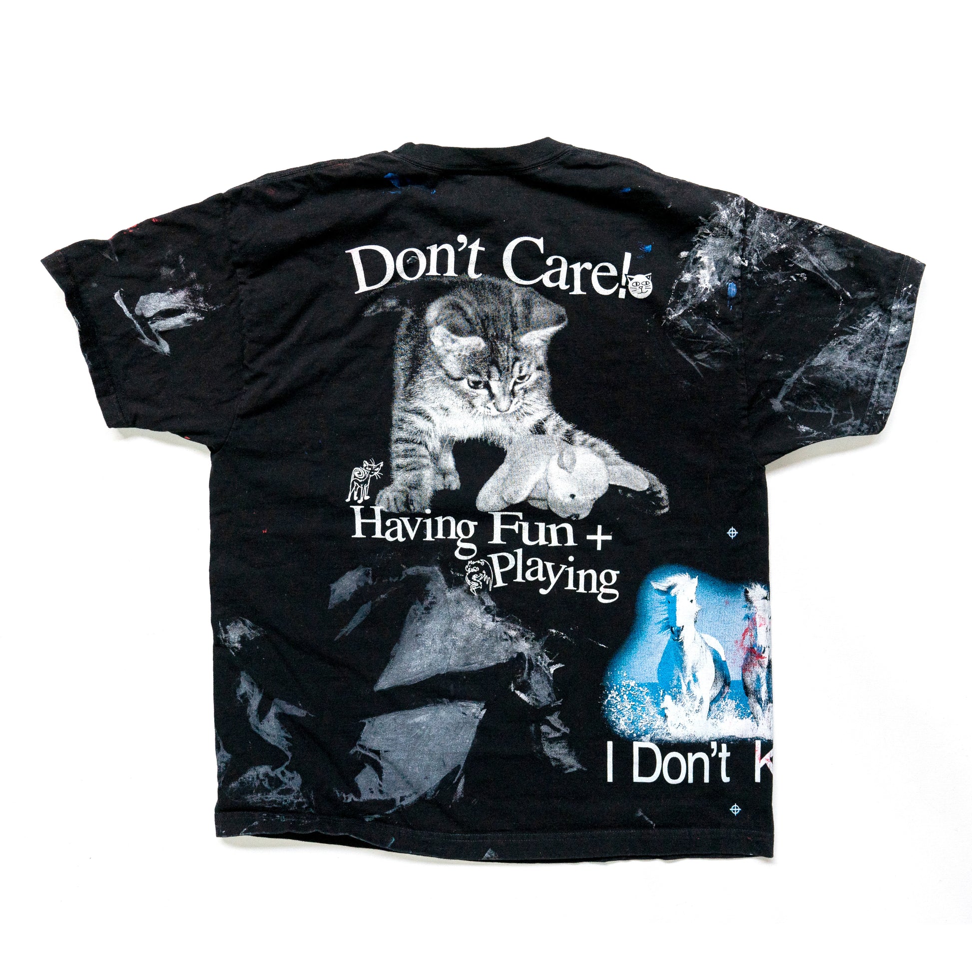 Each test print shop rag shirt is a unique product of several months of screen printing. During a normal print run, screens need to be cleaned, prints need to be aligned, and mistakes are made. These shirts are the result.