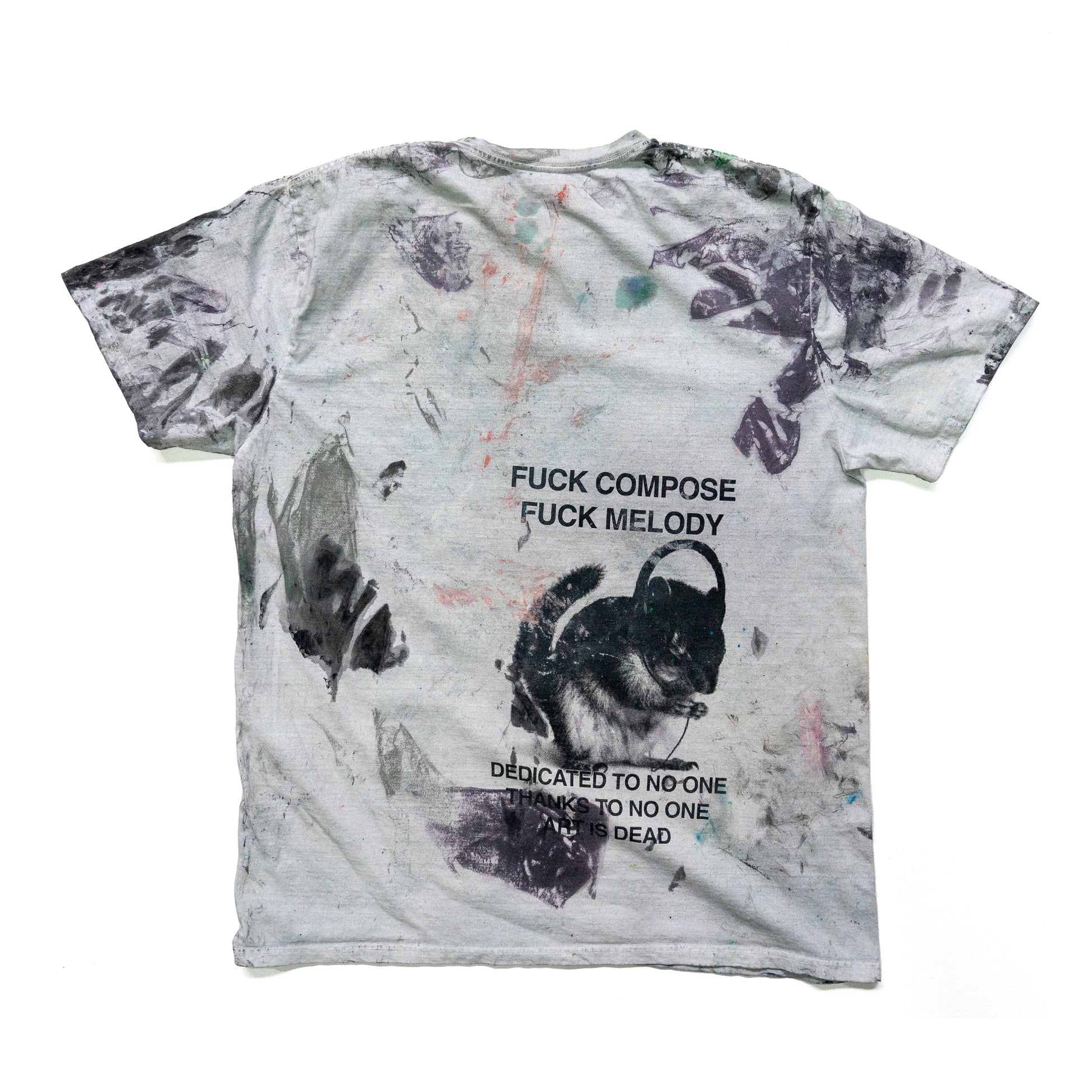 Each test print shop rag shirt is a unique product of several months of screen printing. During a normal print run, screens need to be cleaned, prints need to be aligned, and mistakes are made. These shirts are the result.