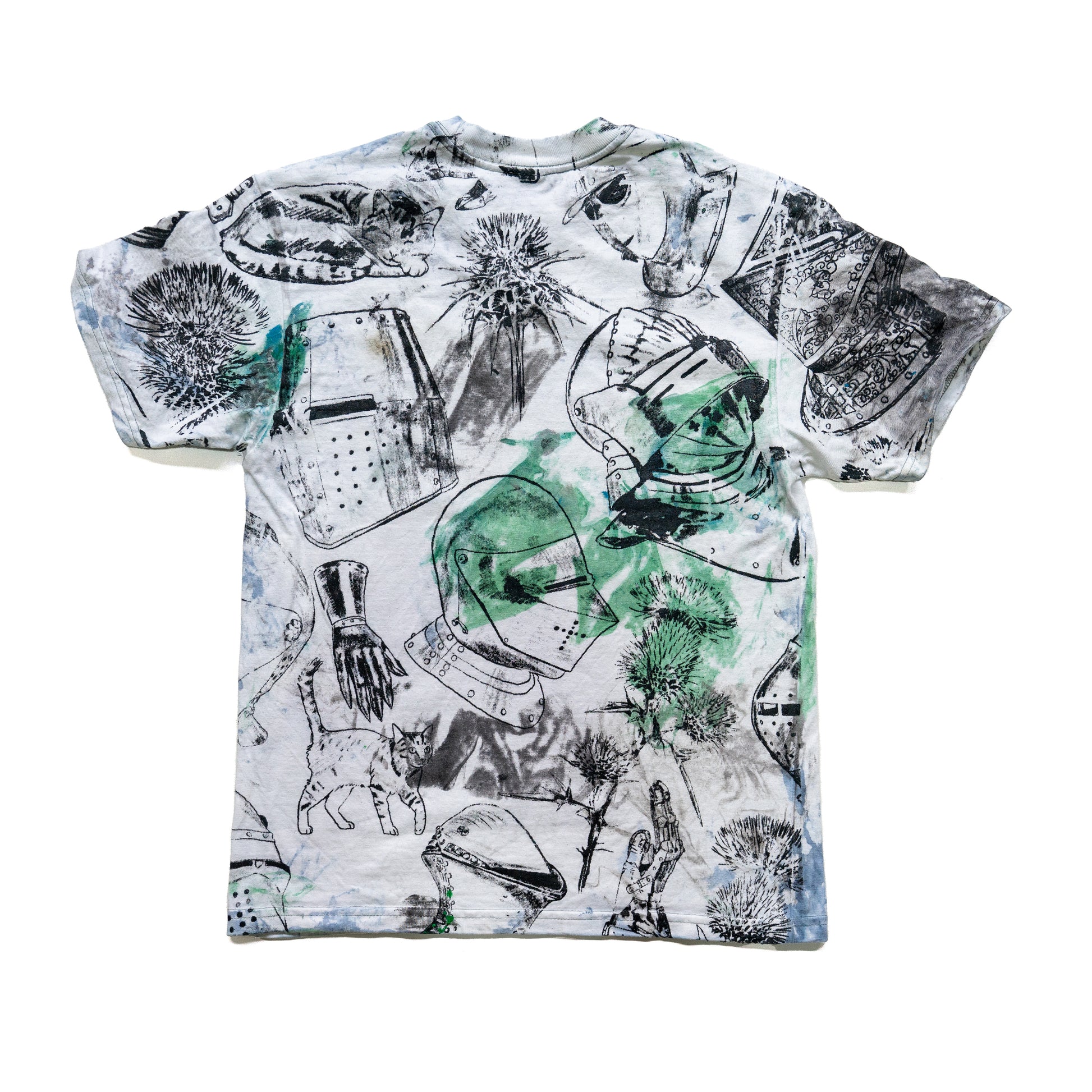 Each test print shop rag shirt is a unique product of several months of screen printing. During a normal print run, screens need to be cleaned, prints need to be aligned, and mistakes are made. These shirts are the result.